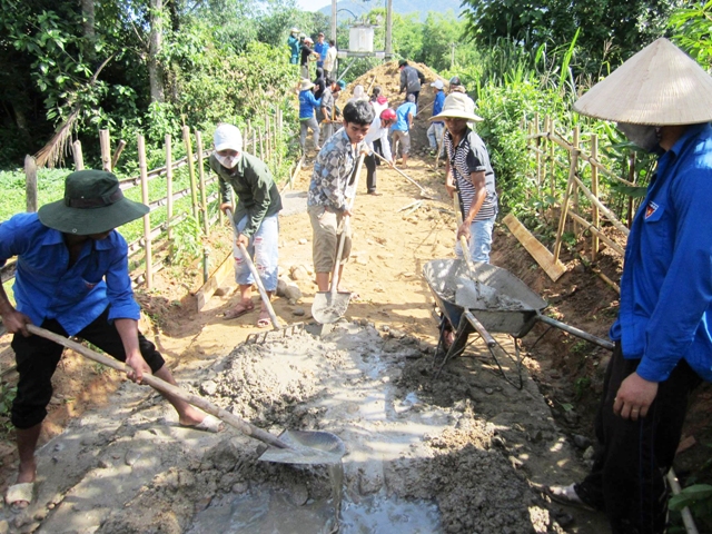 Đoàn viên thanh niên A Lưới làm đường giúp dân