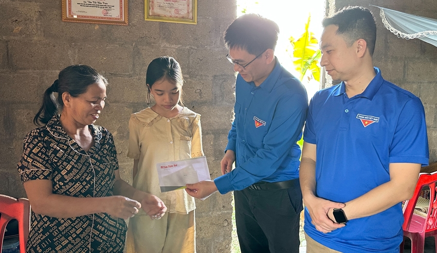 Dịp này, đại diện Chi đoàn Báo và Phát thanh, Truyền hình Huế còn đến thăm và trao tặng số tiền hỗ trợ 4 triệu đồng cho em Văn Đình Nhật Nam - em nuôi của chi đoàn. Nam là con giữa trong một gia đình có ba chị em, bố mất sớm và hoàn cảnh gia đình rất khó khăn.
