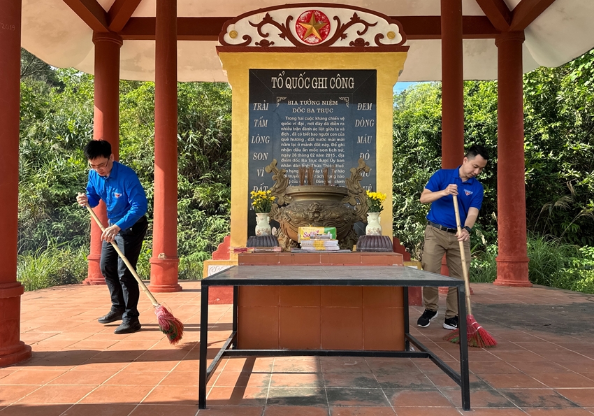 | Đoàn viên Chi đoàn Báo và Phát thanh, Truyền hình Huế dọn dẹp vệ sinh tại di tích lịch sử dốc Ba Trục |