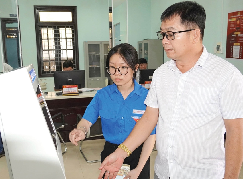 Đối với những người lớn tuổi, việc sử dụng điện thoại để nộp hồ sơ trực tuyến trên Cổng dịch vụ công quốc gia hay sử dụng phần mềm VNeID có phần “gian nan”. Đoàn thanh niên địa phương cũng bố trí riêng một khu vực với 3 đoàn viên để trực tiếp hỗ trợ cho người dân. Bà Nguyễn Thu Trang (67 tuổi, phường Kim Long) chia sẻ: “Những người già như tôi đi làm hồ sơ thường khá khó khăn, điền thông tin giấy tờ cho đúng đã khó chứ chưa nói đến việc sử dụng phần mềm hiện đại. Nhờ các cháu thanh niên hướng dẫn, hỗ trợ một số khâu nên quá trình làm thủ tục nhanh hơn hẳn”.