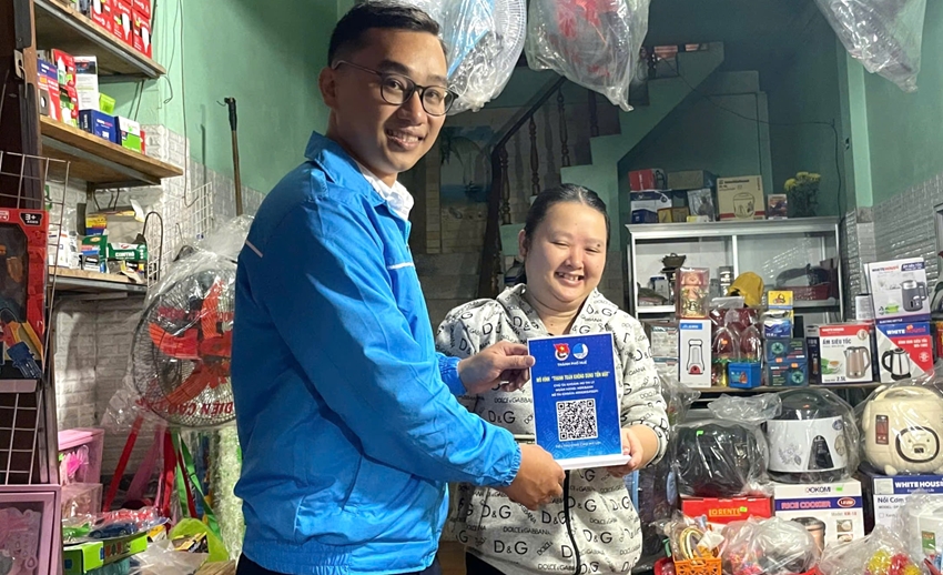 | Đoàn viên, thanh niên hỗ trợ người dân thực hiện mô hình “Thanh toán không dùng tiền mặt” |