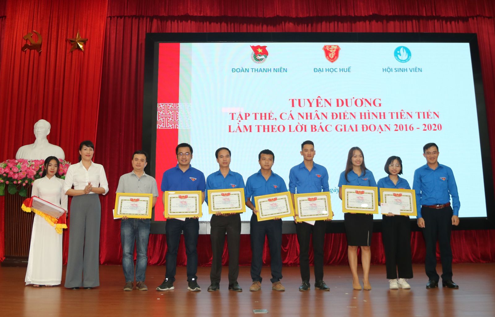 Trong dịp này, Đoàn ĐH Huế cũng vinh dự có 2 tập thể và 5 cá nhân được tuyên dương tập thể, cá nhân điển hình tiên tiến làm theo lời Bác cấp tỉnh, giai đoạn 2016 - 2020.