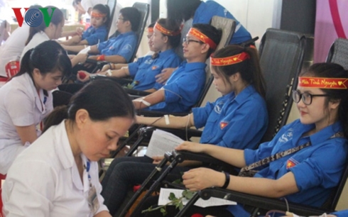 Thanh niên tham gia hiến máu tình nguyện.
