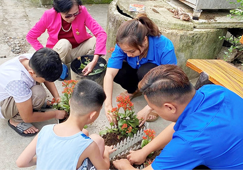 | Hội Cựu Chiến binh và Đoàn Thanh niên phường Đông Ba trồng hoa xây dựng cảnh quan tại Tuyến kiệt "Ông và cháu" tổ dân phố 8 |