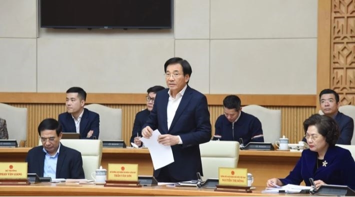 | Bộ trưởng, Chủ nhiệm Văn phòng Chính phủ Trần Văn Sơn phát biểu ý kiến tại phiên họp. (Ảnh: TRẦN HẢI) |