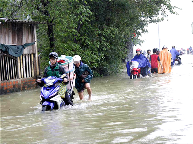 17h chiều 14/12, một số tuyến đường thấp trũng ở TP Huế như Dương Văn An, Bà Triệu, Tố Hữu, Phan Chu Trinh… bị ngập một số đoạn. Tại khu vực nội thành, mưa lớn cùng với việc thủy điện xả lũ đã làm nhiều tuyến đường bị cô lập.
