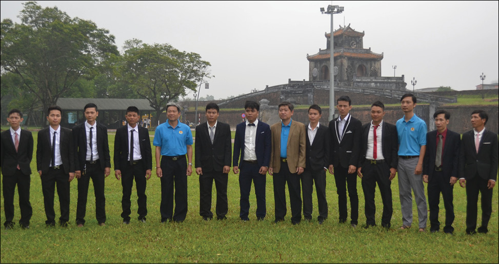 Các chú rể chụp ảnh lưu niệm với ban tổ chức