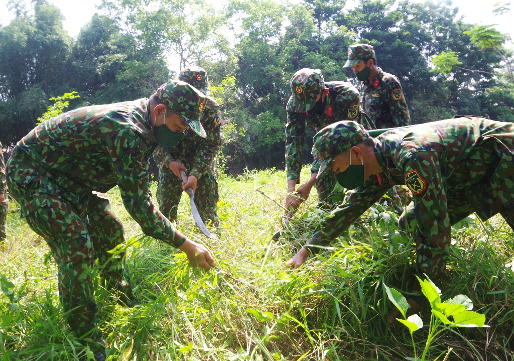 Cán bộ, chiến sĩ Bộ CHQS tỉnh tổ chức phát quang bụi rậm, cỏ dại dọc bờ sông Vạn Vạn thuộc Phường Kim Long, TP. Huế