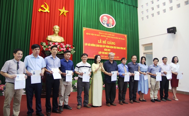 Kết quả, 156 học viên được Trường Chính trị Nguyễn Chí Thanh cấp chứng chỉ hoàn thành lớp bồi dưỡng lãnh đạo cấp phòng Bệnh viện Trung ương Huế năm 2022; trong đó, có 19 học viên đạt loại giỏi, 137 học viên đạt loại khá.
