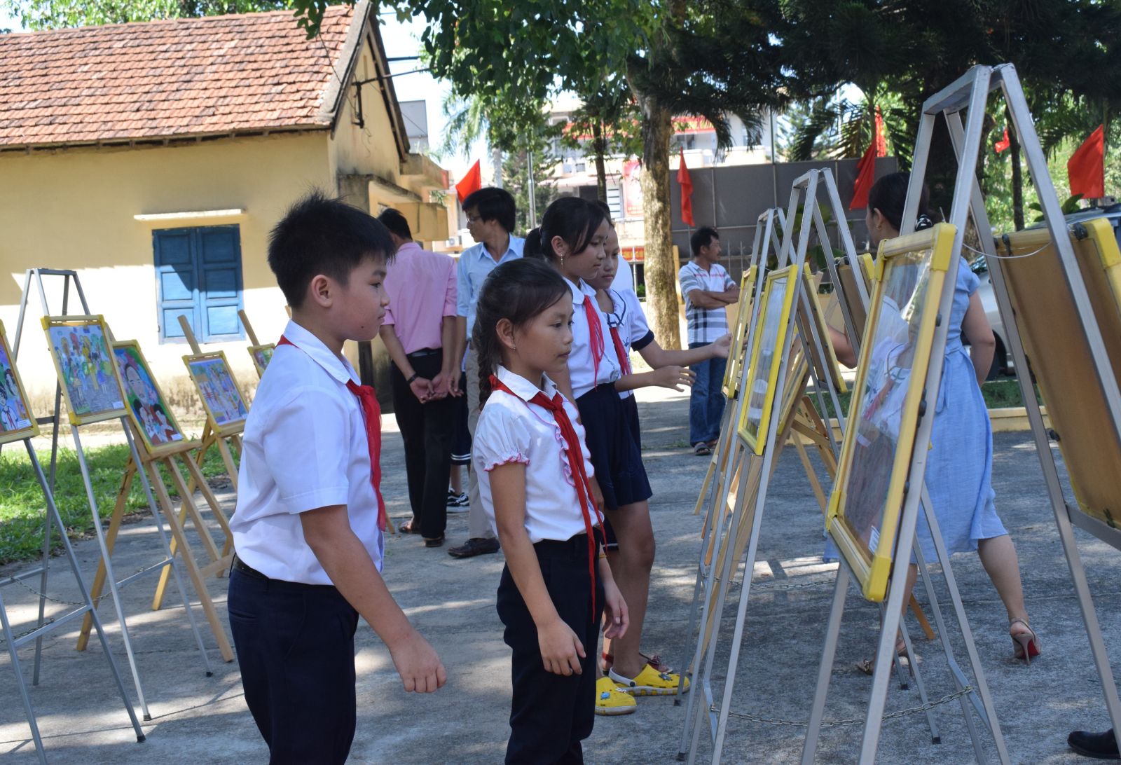 Tham quan điểm trưng bày tranh vẽ của thiếu nhi về Bác Hồ