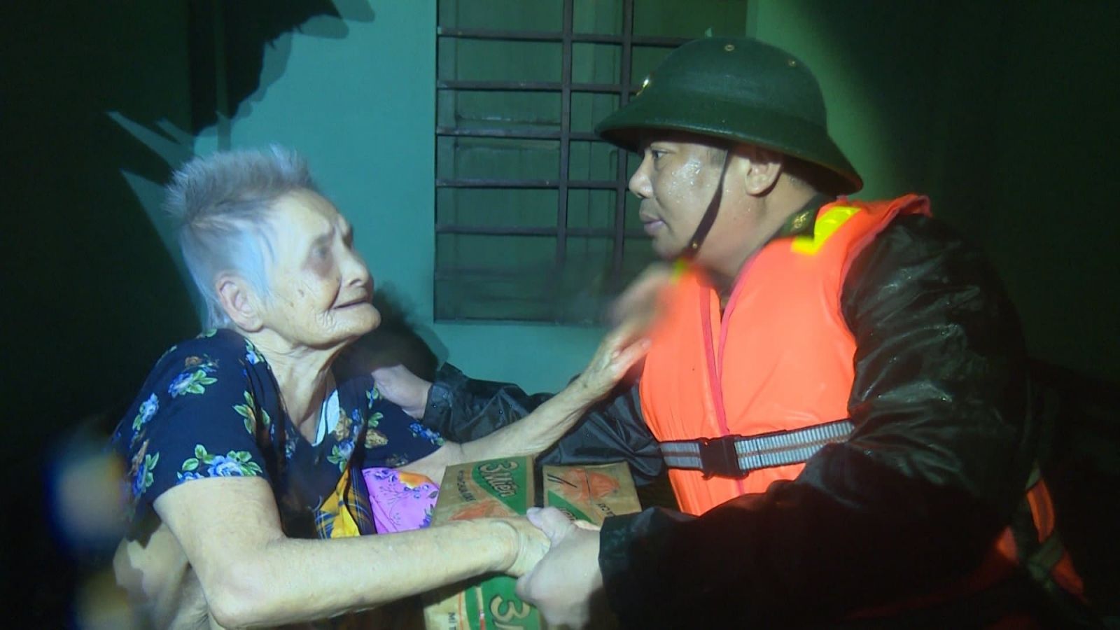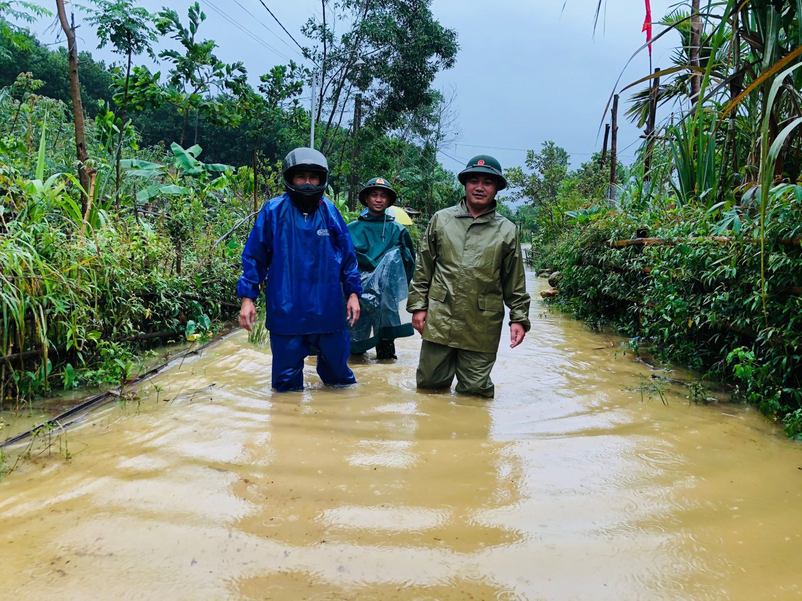 Cầu Diên Trường bị ngập nặng, chia cắt Thuận An với vùng tiếp giáp, lực lượng bộ đội biên phòng phải dùng phương tiện thuyền, ghe để tiếp cận nhà dân trao quà, động viên người dân.