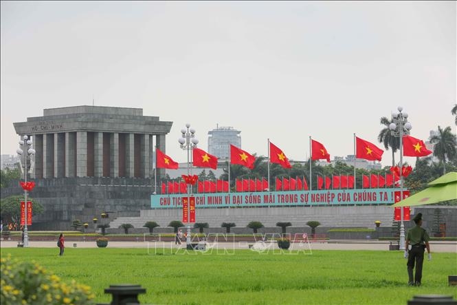 | Phía trước Lăng Chủ tịch Hồ Chí Minh rực rỡ màu cờ, băng rôn cỡ lớn chào mừng 48 năm Ngày giải phóng miền Nam, thống nhất đất nước 30/4/1975 - 30/4/2023. Ảnh: Hoàng Hiếu/TTXVN |