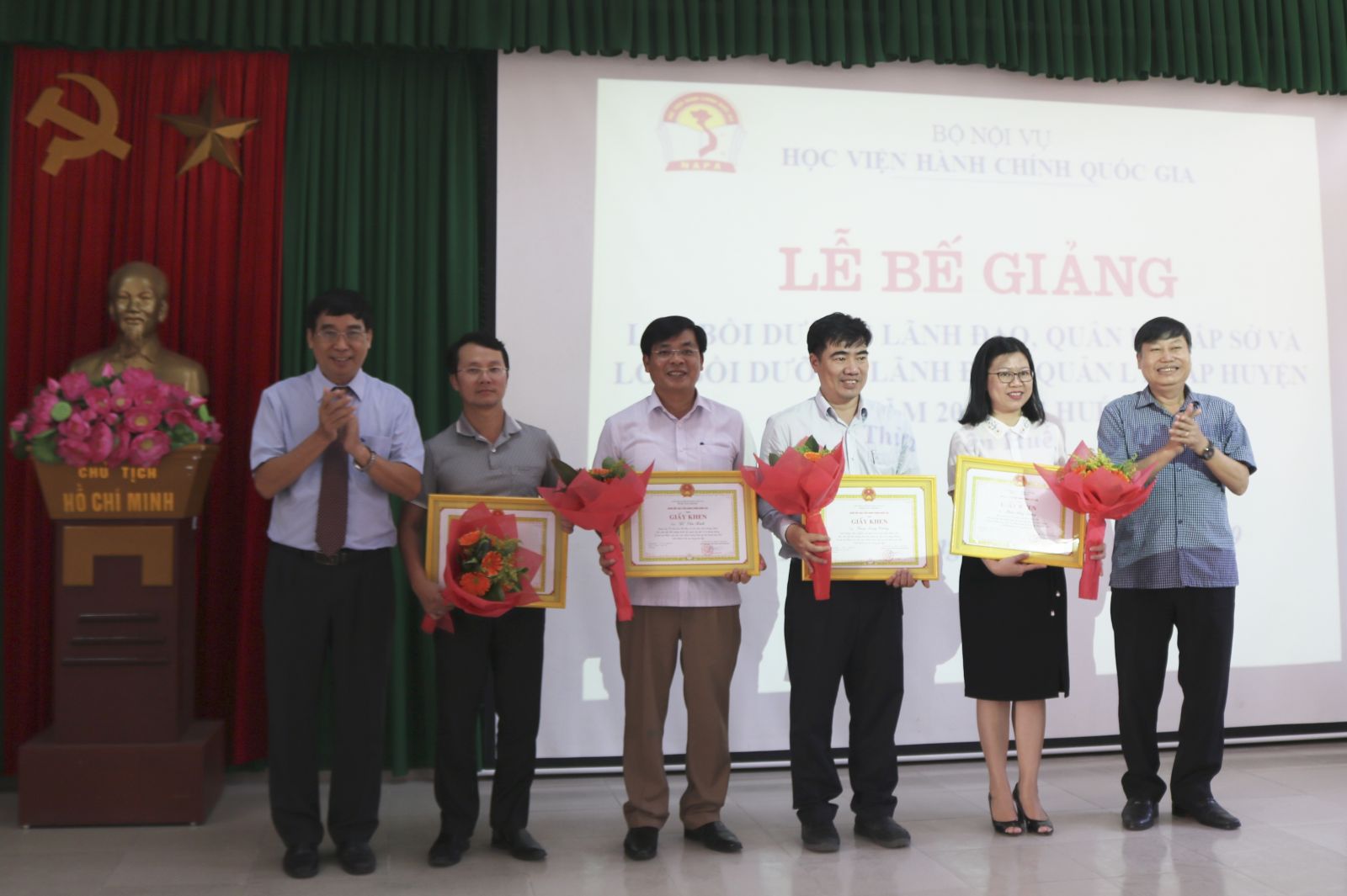 Đối với lớp bồi dưỡng lãnh đạo cấp huyện, có 35/35 học viên đủ điều kiện cấp chứng chỉ, với 4 học viên đạt loại giỏi, 29 học viên loại khá và 2 học viên loại trung bình.