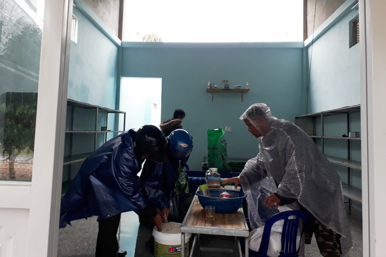 Lực lượng chức năng của xã giúp người dân có nhà bị tốc mái ở Bắc Sơn di chuyển đồ đạc