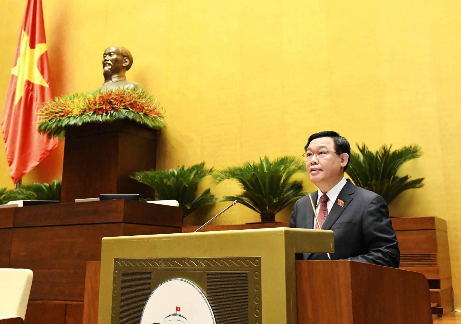 Chủ tịch Quốc hội Vương Đình Huệ phát biểu khai mạc kỳ họp. Ảnh VGP/Nhật Bắc