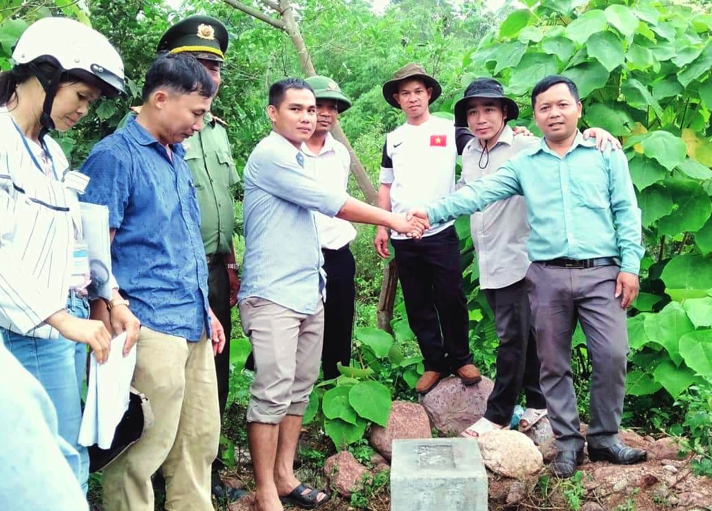 Lãnh đạo xã Hồng Thủy và A Bung (huyện Đakrong) thể hiện tình đoàn kết tại buổi bàn giao mốc địa giới hành chính