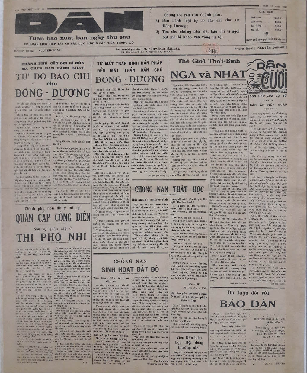 Báo Dân xuất bản năm 1938. Ảnh: DPT