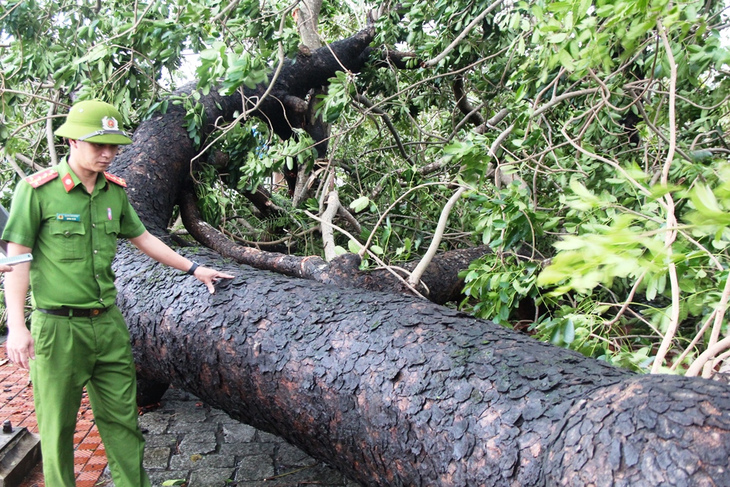 Lực lượng công an có mặt tại hiện trường những địa điểm bị ảnh hưởng do bão số 13 gây ra để xử lý, khắc phục