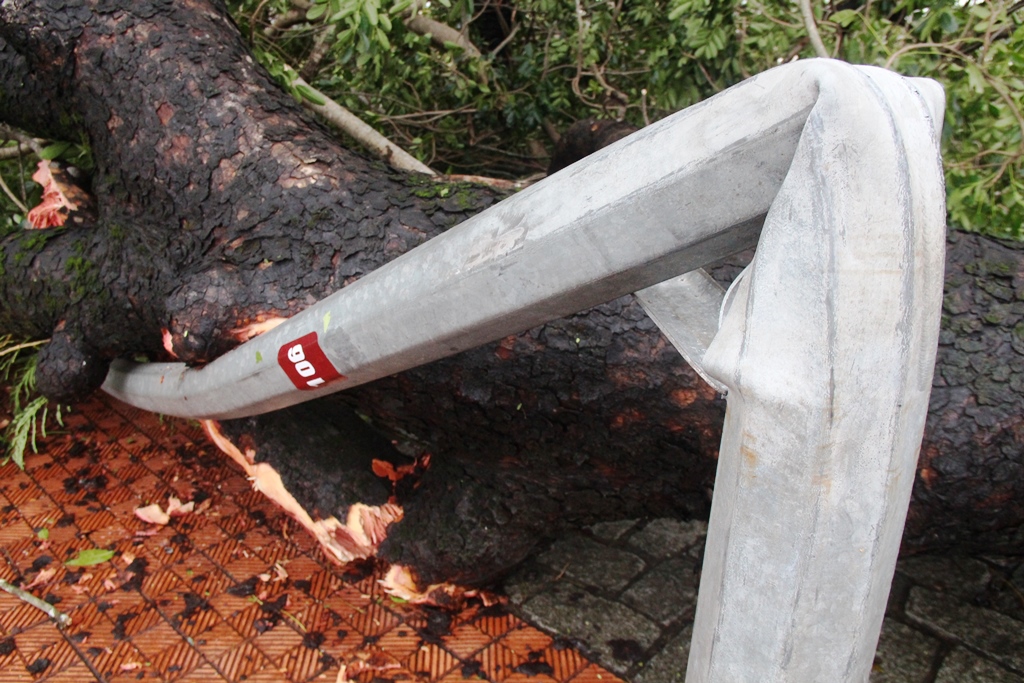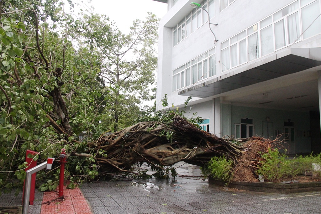 Cây cổ thụ bên trong trụ sở số 1 Điện Biên Phủ bật gốc, rất may không có phương tiện đậu đỗ gần đó