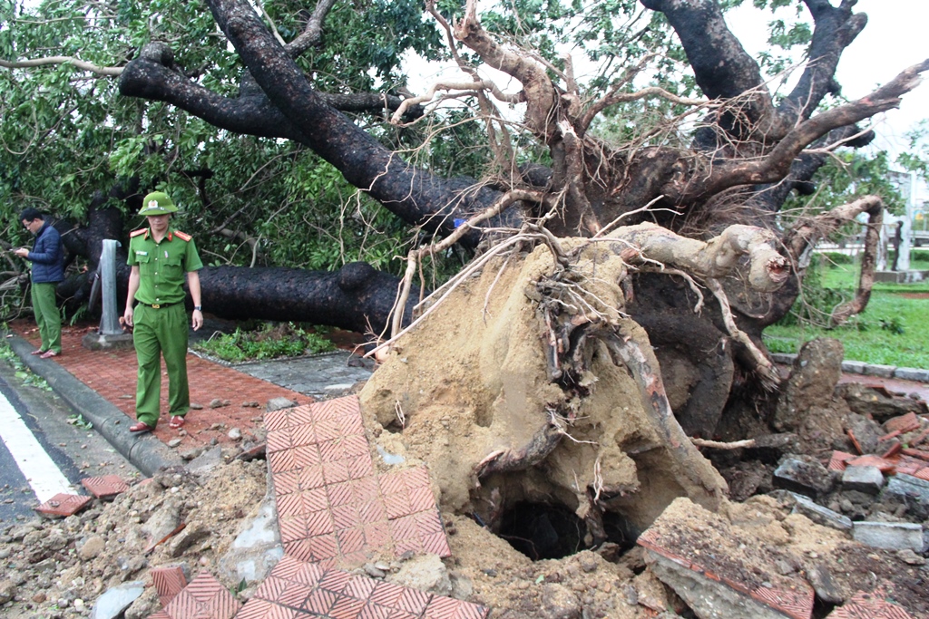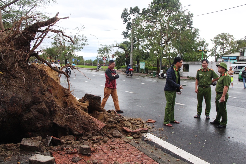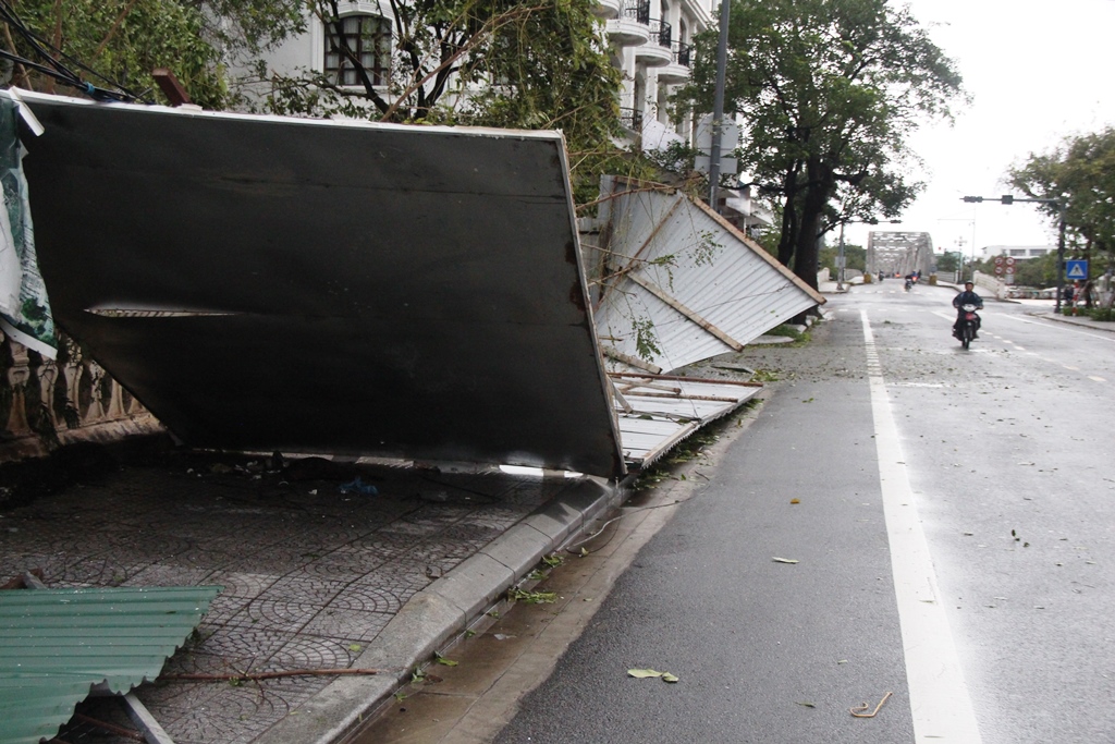 Rạng sáng 15/11 gió đã lặng sau một đêm dài quần quét trên toàn tỉnh. Tại TP. Huế, các lực lượng chức năng đã xuống đường để kiểm tra thiệt hại, tạm thời khắc phục những hậu quả mà bão gây ra.