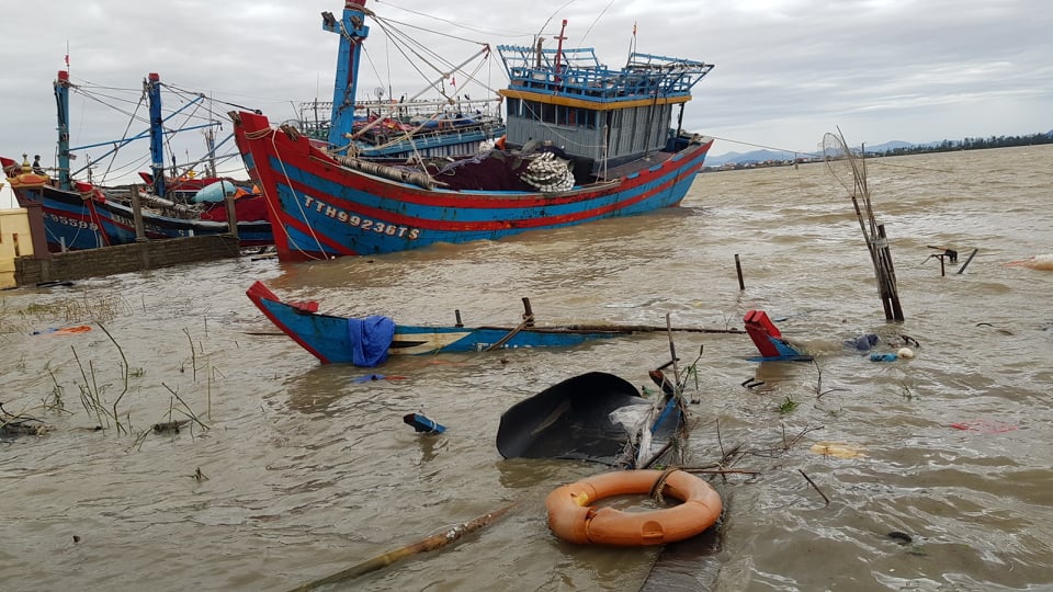 Thuyền cá của ngư dân tại Thuận An bị bão đánh chìm