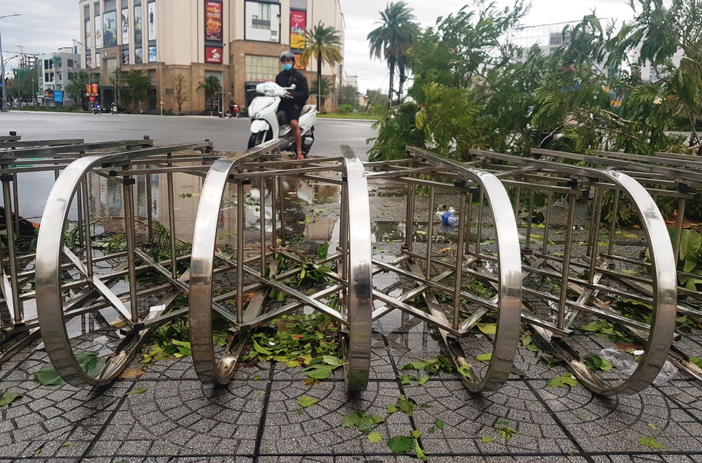 “Bão vào ban đêm. Nhưng rất may sáng ra vẫn thấy mọi thứ yên ổn. Hy vọng sẽ không có thiệt hại gì nặng nề”, một người dân dọn dẹp bão trên đường Hùng Vương sáng 15/11, nói.