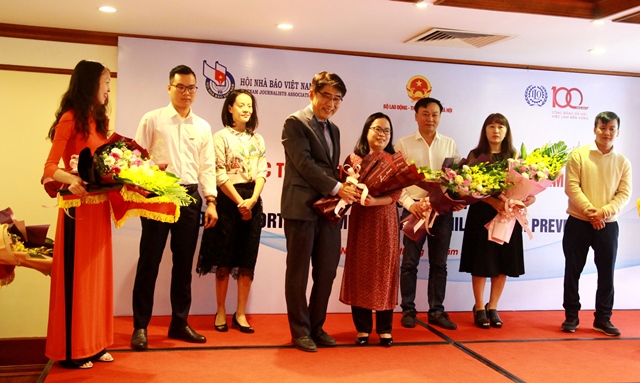 Ông Chang-Hee Lee, Giám đốc ILO tại Việt Nam trao giải cho các nhà báo đoạt giải tại cuộc thi