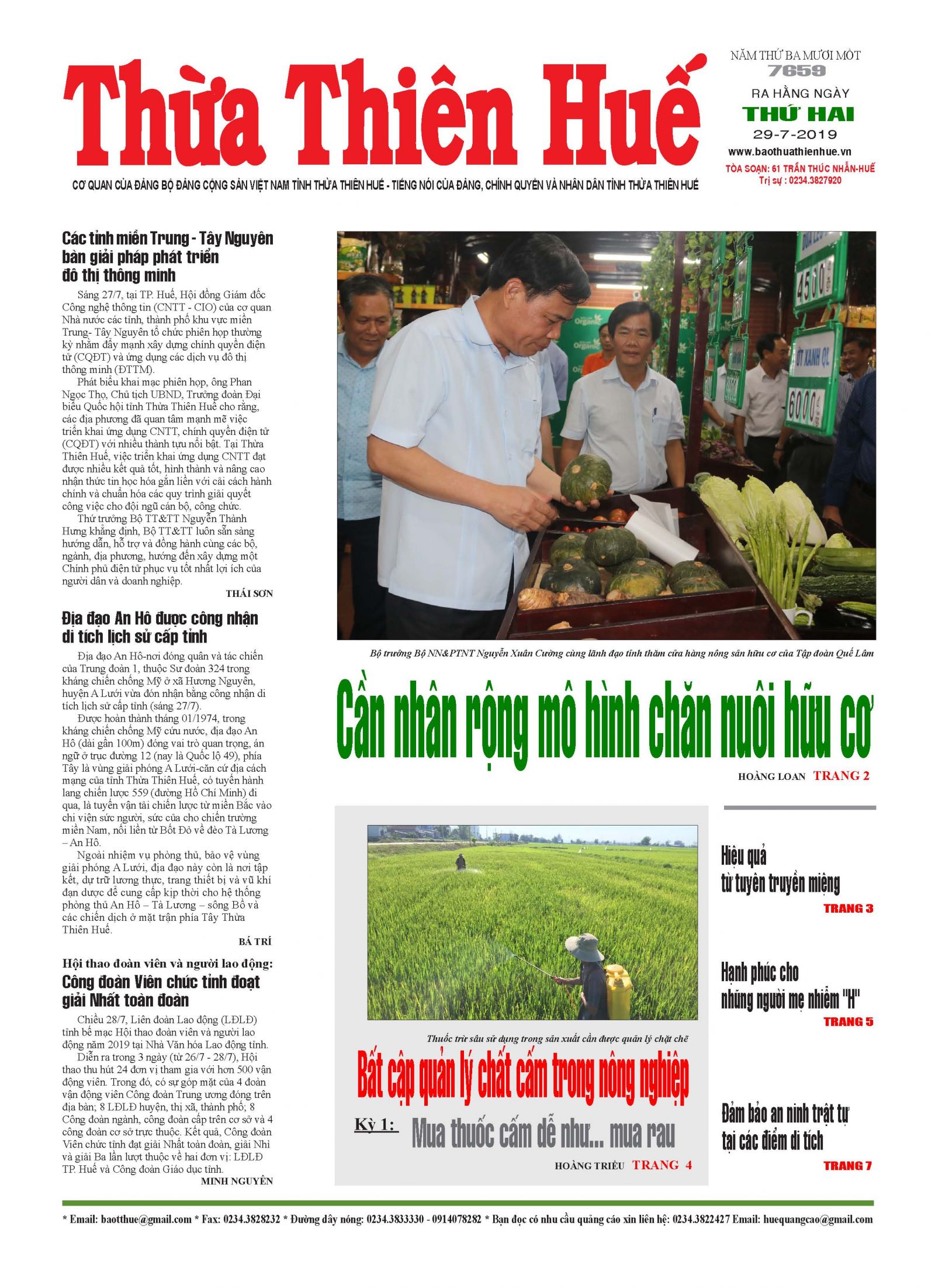 Trang bìa Báo Thừa Thiên Huế phát hành ngày 29/7