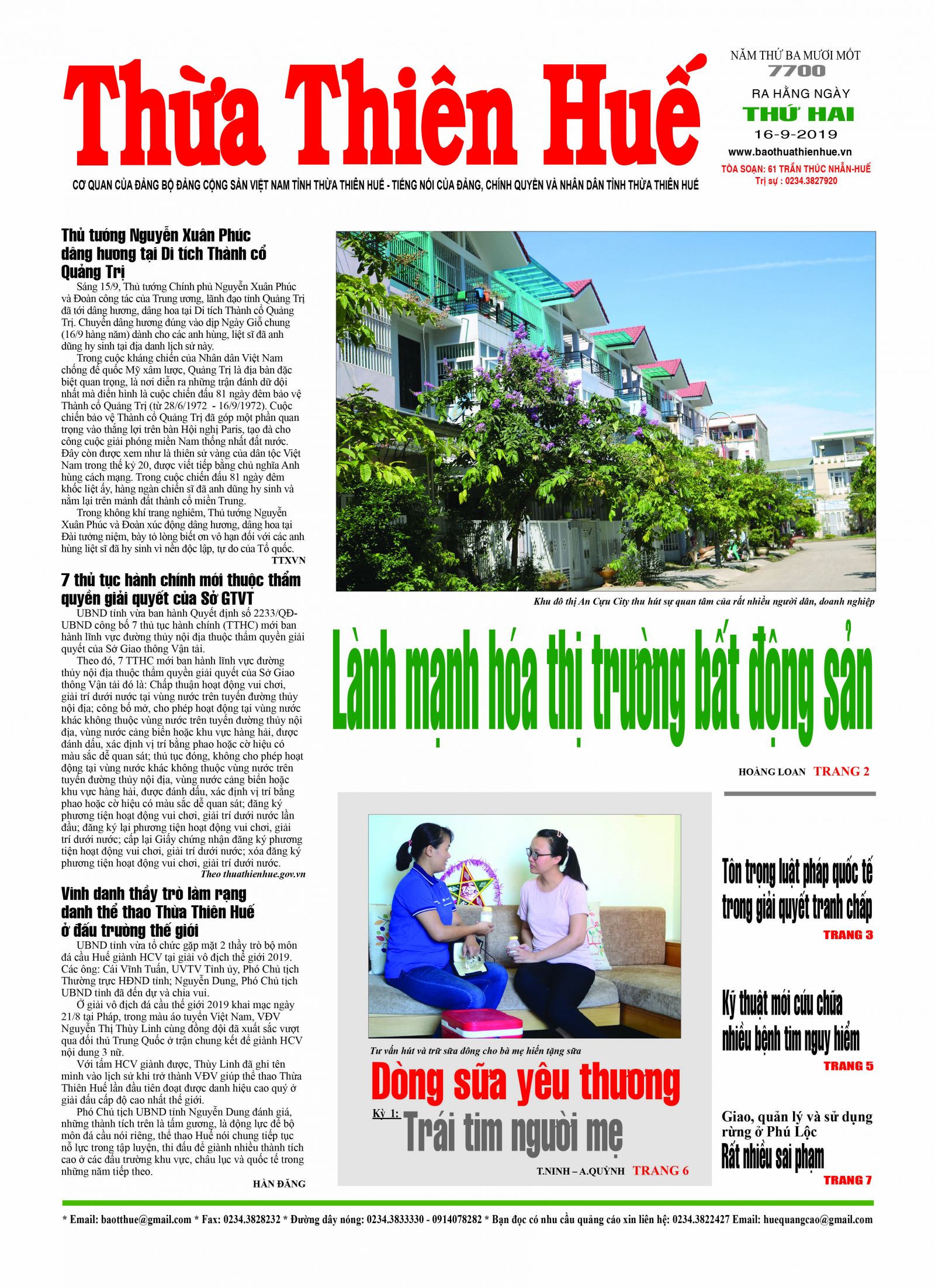 Trang 1 Báo Thừa Thiên Huế ngày 16/9