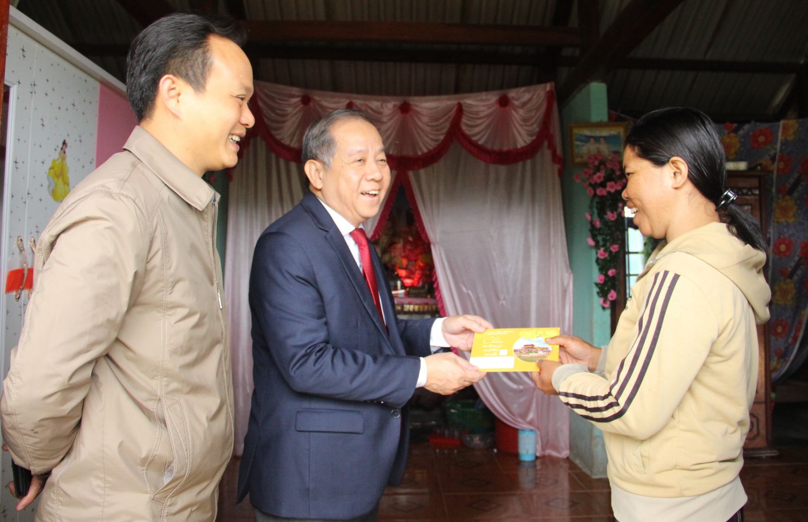 Dịp này, Chủ tịch UBND tỉnh Phan Ngọc Thọ đến chúc tết, tặng quà chúc mừng 2 hộ dân thoát nghèo tiêu biểu tại xã Trung Sơn (xã mới sắp xếp đơn vị hành chính trên cơ sở sáp nhập 2 xã Hồng Trung và Bắc Sơn).