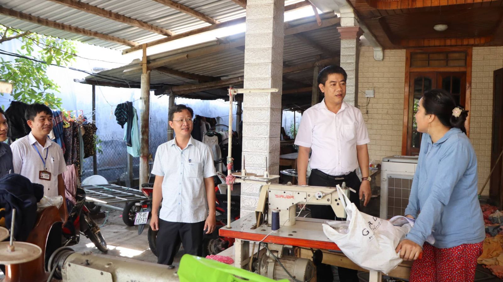 Thăm mô hình may mặc, động viên người dân nỗ lực sản xuất