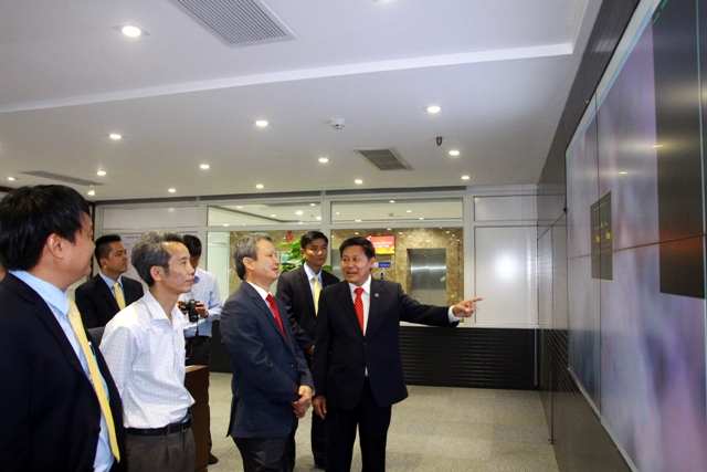 Thăm, tặng quà tết cán bộ, nhân viên Trung tâm Điều khiển, Phòng Điều độ Công ty Điện lực tỉnh, Bí thư Tỉnh ủy Lê Trường Lưu vui mừng khi thấy hoạt động, phương tiện, kỹ thuật của trung tâm ngày càng hiện đại.