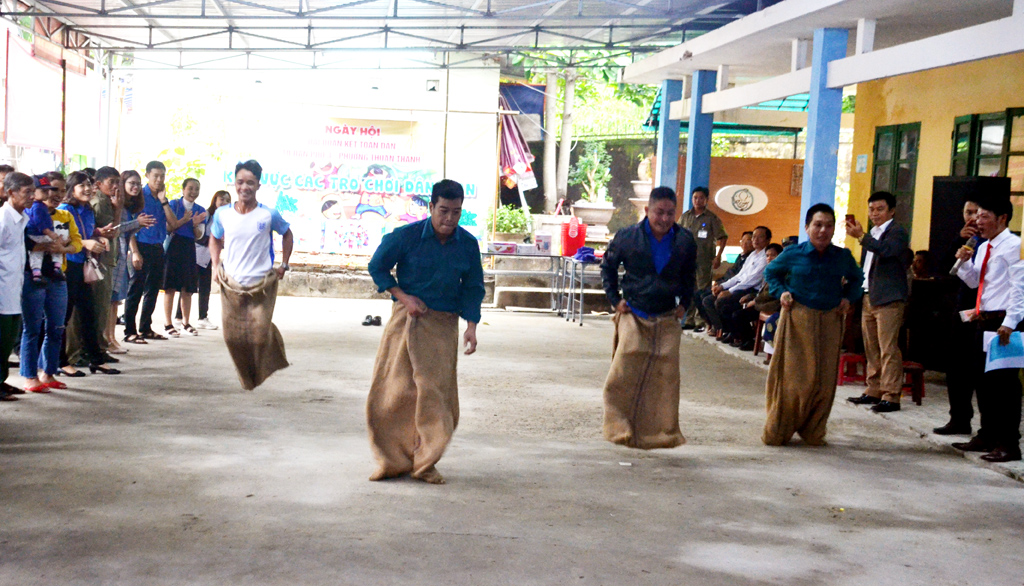 Trước khi bước vào phần lễ, tổ dân phố 3, phường Thuận Thành đã tổ chức các trò chơi vui nhộn, thắt chặt thêm tình đoàn kết trong khu dân cư.
