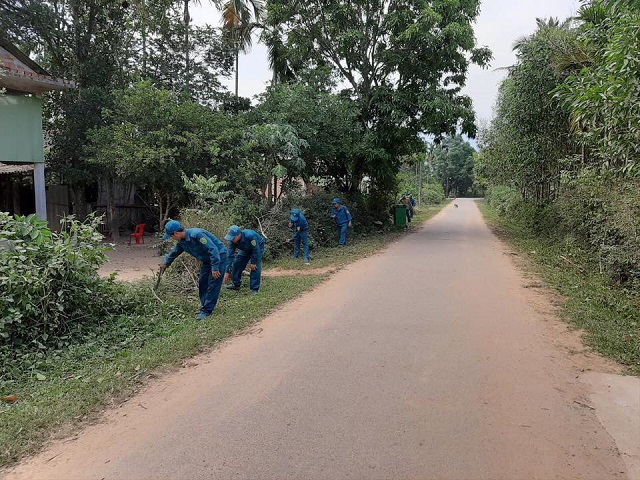 | Dân quân huyện Nam Đông tham gia dọn vệ sinh môi trường |