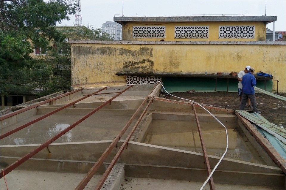Mái tôn hội trường của một trường thuộc ĐH Huế bị tốc mái sau bão (Ảnh: ĐHH)