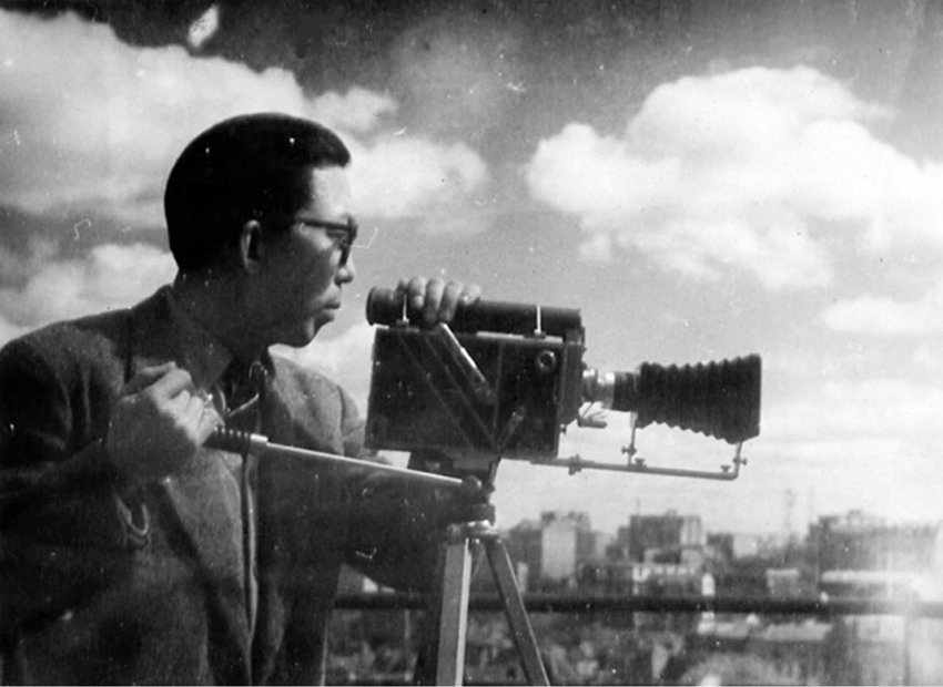 | Mai Trung Thứ quay phim trong chuyến thăm của Chủ tịch Hồ Chí Minh tại Pháp năm 1946. Ảnh tư liệu do tác giả cung cấp |