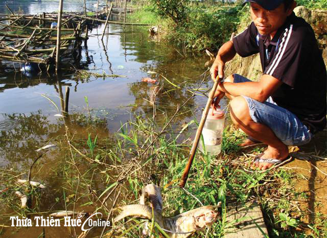 Ngay sau khi xảy ra hiện tượng cá chết, Chi cục Thủy sản tỉnh đã về lấy mẫu nước để phân tích. Sáng 7/4, đại diện Chi cục Chăn nuôi thú y tỉnh, Trạm Thú y, Phòng Kinh tế thị xã Hương Trà đã trực tiếp xuống hiện trường các lồng cá của dân để ghi nhận tình hình, thiệt hại ban đầu. Qua kiểm tra thực tế các khu vực có lồng cá cho thấy nước sông có màu đậm, dòng chảy không có (nước đứng), thức ăn dư thừa, xác cá chết nổi nhiều trên mặt sông. Tiếp xúc với đoàn kiểm tra, người dân phản ánh cá nổi ngáp trước khi chết xuất hiện chủ yếu về đêm.