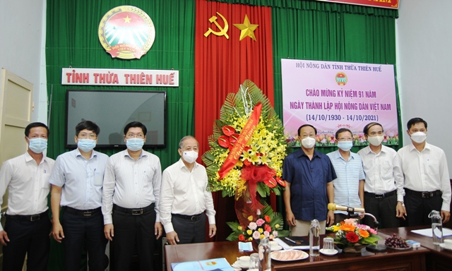 Phó Bí thư Thường trực Tỉnh ủy Phan Ngọc Thọ tặng hoa chúc mừng HND tỉnh nhân Kỷ niệm 91 năm Ngày thành lập HND Việt Nam (14/10/1930 - 14/10/2021)
