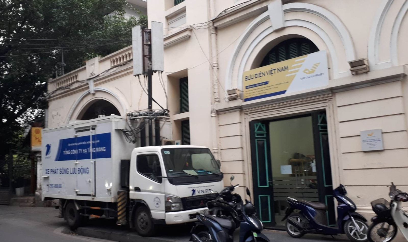 Một trạm phát sóng di động BTS tại khu vực hồ Hoàn Kiếm, Hà Nội.