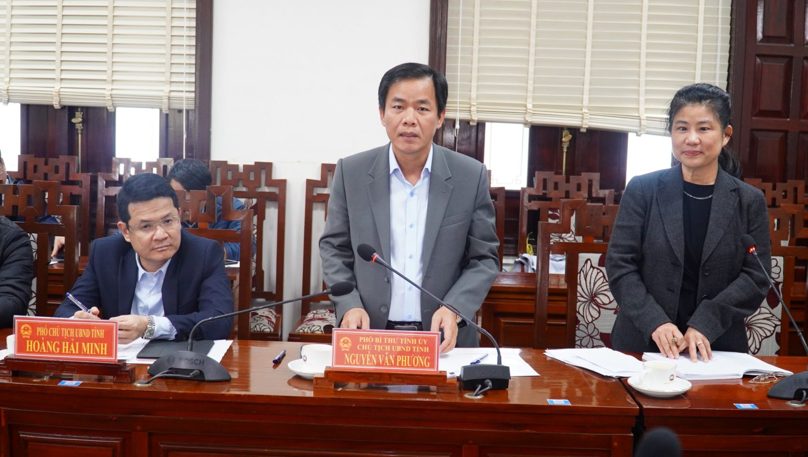 Chủ tịch UBND tỉnh Nguyễn Văn Phương trao đổi tại buổi làm việc. Ảnh: N.H