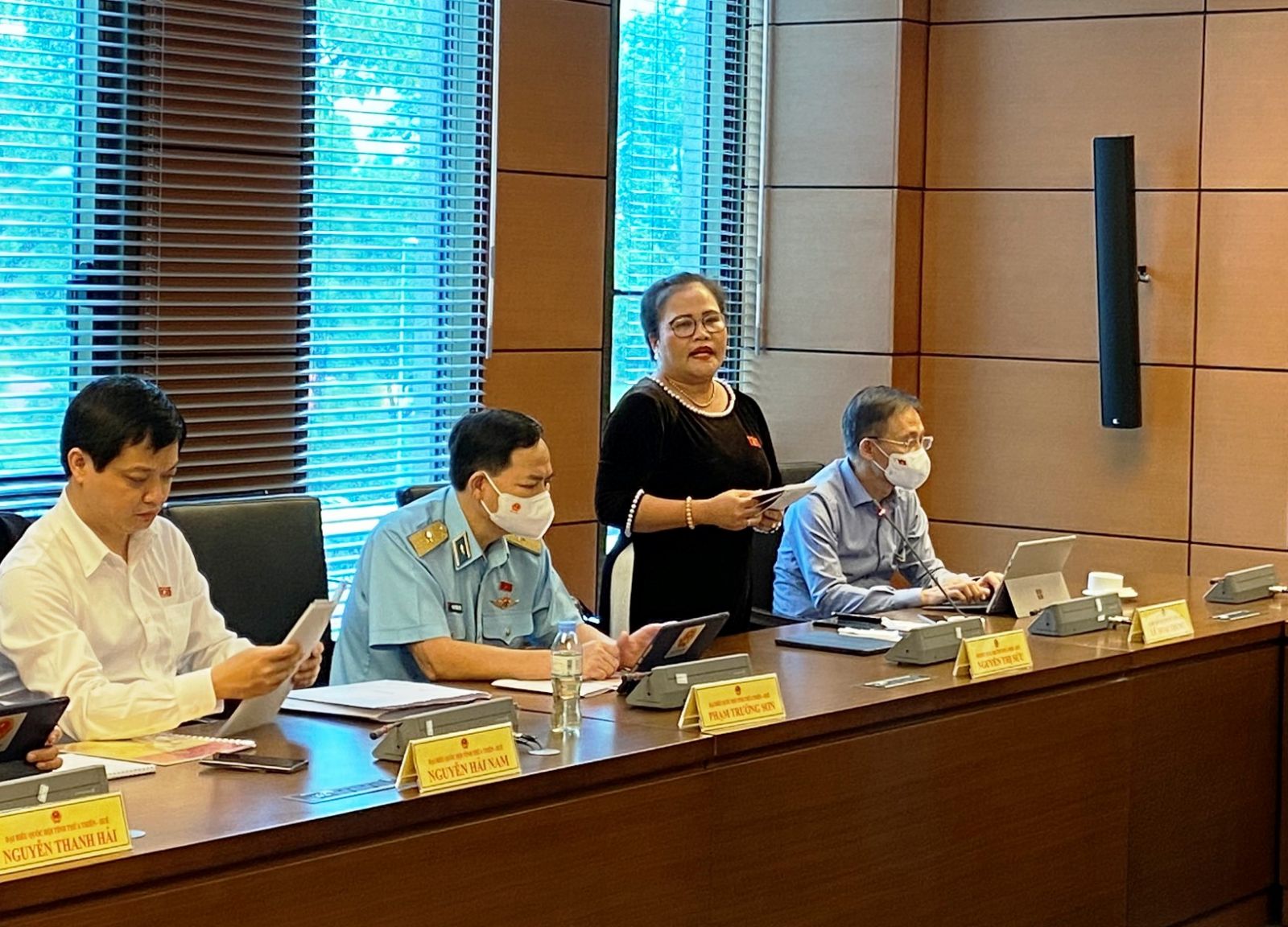 Phó Trưởng đoàn ĐBQH tỉnh Nguyễn Thị Sửu phát biểu thảo luận tại tổ