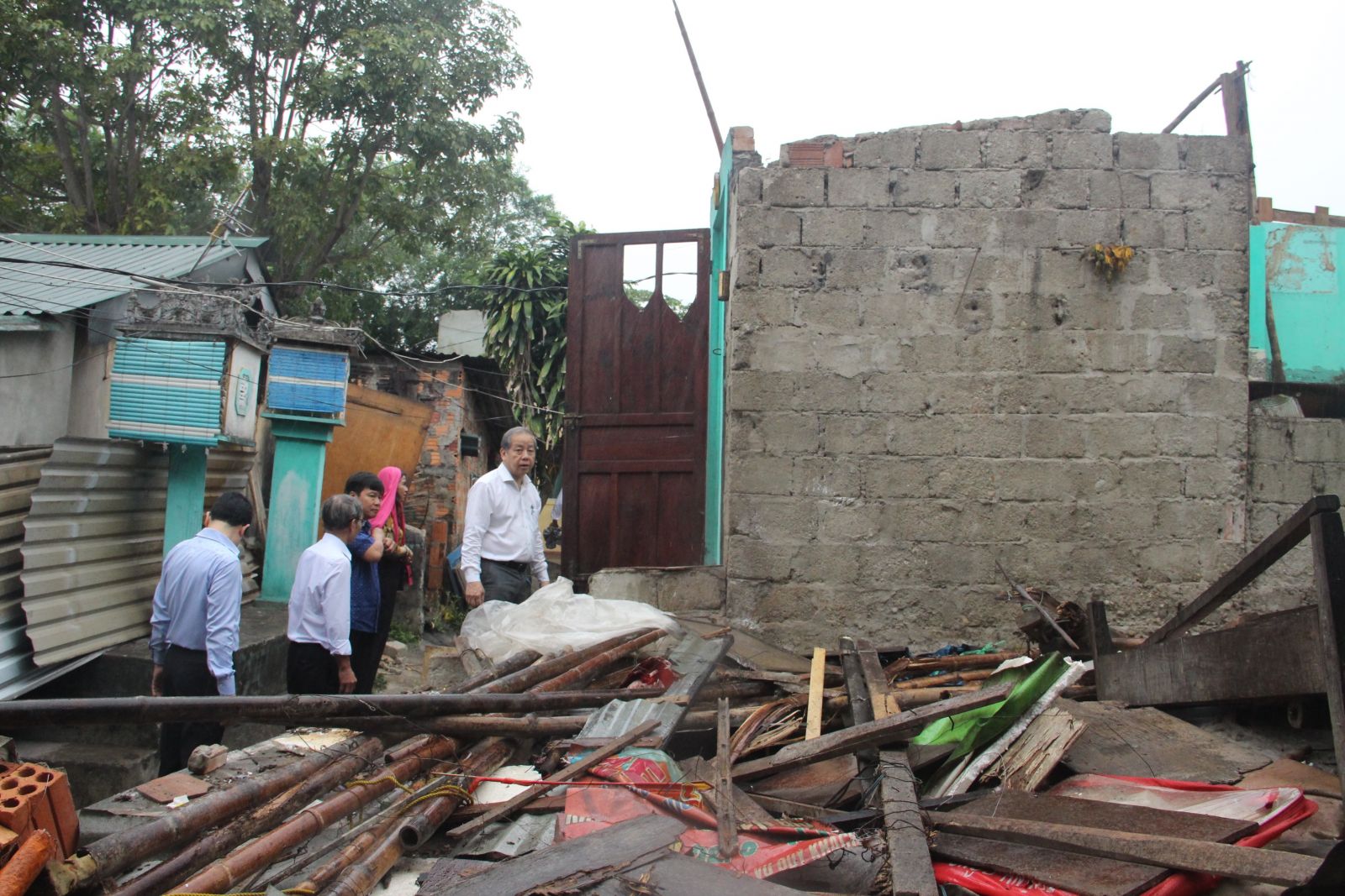 Chủ tịch UBND tỉnh Phan Ngọc Thọ (bìa trái) kiểm tra việc xây dựng nhà cho hộ nghèo tại Khu tái định cư Hương Sơ