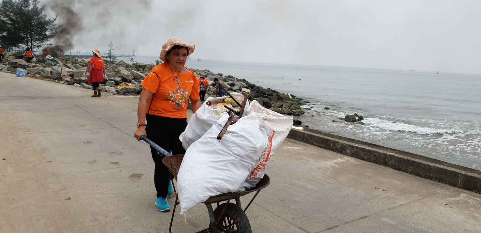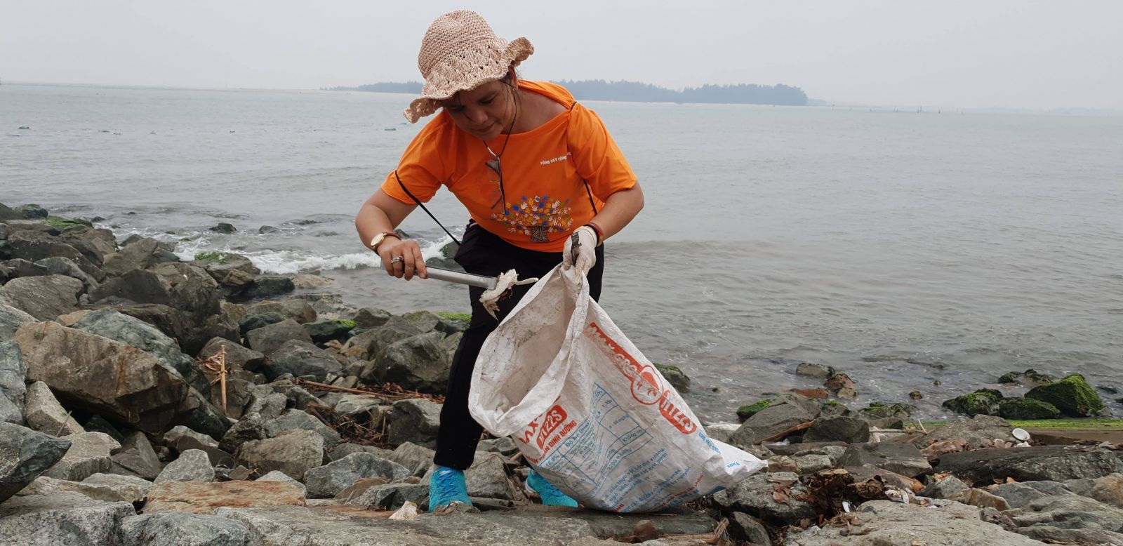 Có mặt tại bờ biển Hải Dương trong sáng 23/3 cùng hơn 20 thành viên nhóm Vòng tay cộng đồng, chị Âu Thị Nguyệt Liên, thành viên nhóm bức xúc: “Rác quá nhiều mà toàn rác không phân hủy. Tụi mình phải dùng kẹp để gắp rác trong các kẽ đá, nhiều nhất là các mảnh xốp, túi ni lon, vỏ hộp… Nếu dọc bờ kè này có đặt các thùng rác thì sẽ góp phần hạn chế rác thải ra môi trường”.