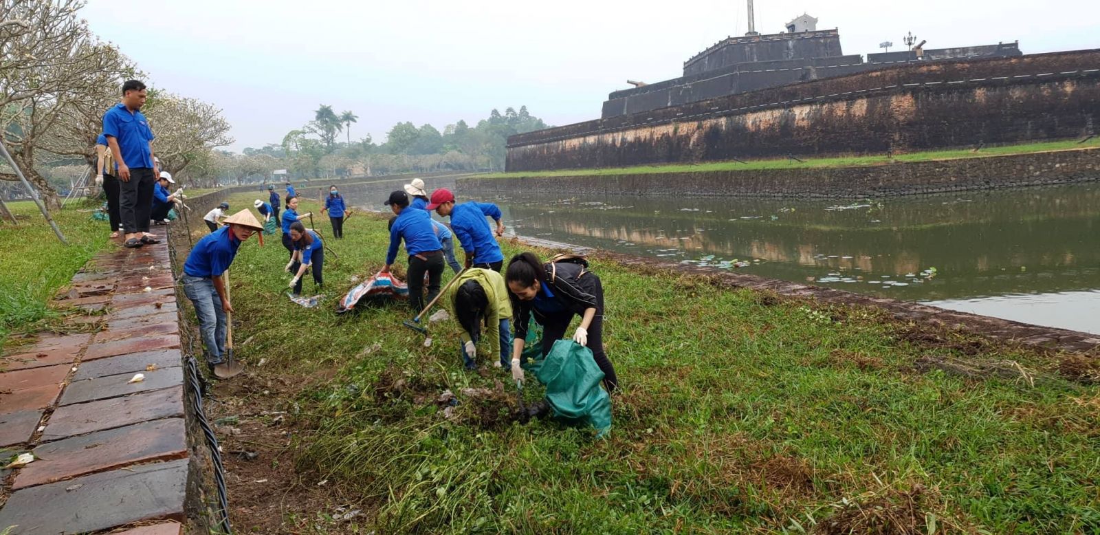Cảnh quan tại khu vực từ cửa Quảng Đức - Cửa Ngăn sau các đợt ra quân Ngày Chủ nhật xanh, giờ đã cơ bản sạch rác. Tại đây, các lực lượng đoàn viên thanh niên của các đơn vị vẫn tiếp tục ra quân làm vệ sinh, thu gom rác, cắt cỏ để trả lại môi trường xanh- sạch- đẹp cho điểm di tích.
