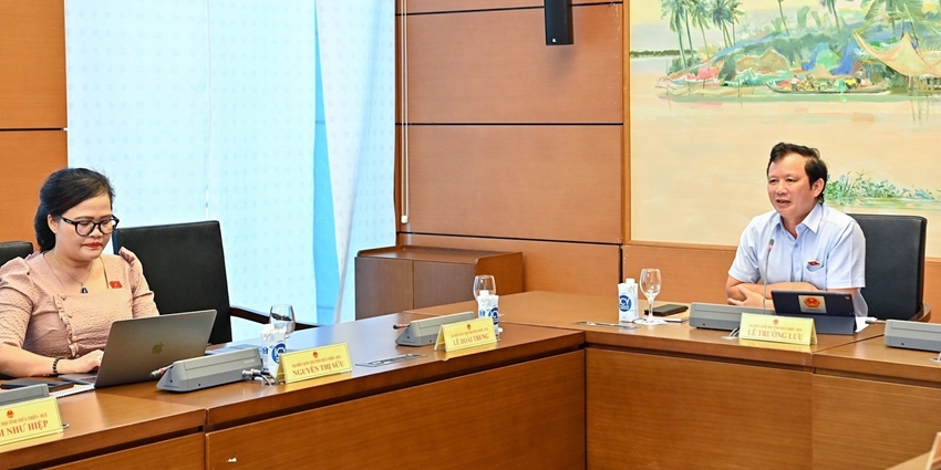 | Trưởng đoàn ĐBQH tỉnh Lê Trường Lưu điều hành phiên thảo luận tại tổ. Ảnh: Đoàn ĐBQH tỉnh |
