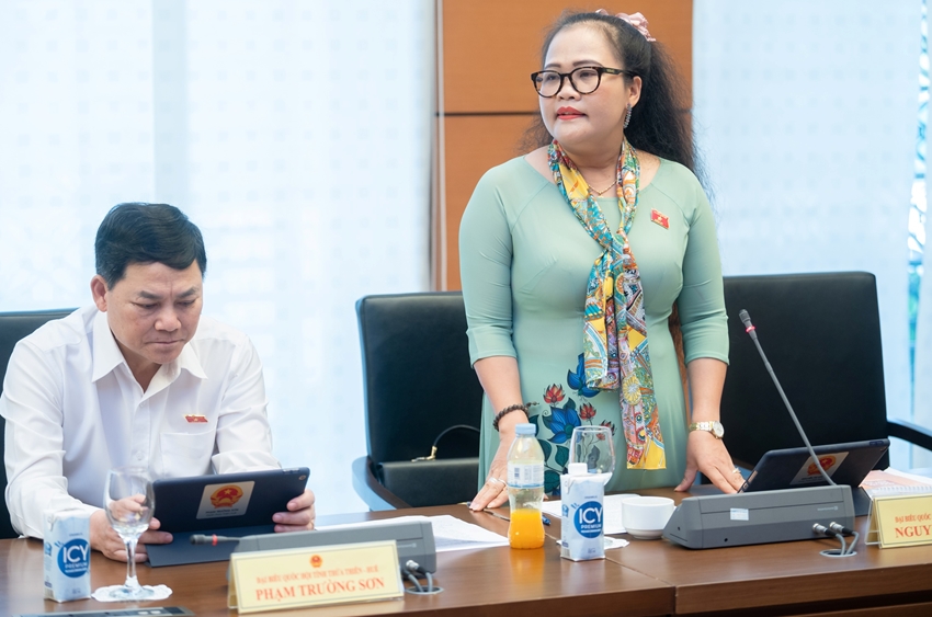 | Đại biểu Nguyễn Thị Sửu góp ý tại phiên thảo luận |