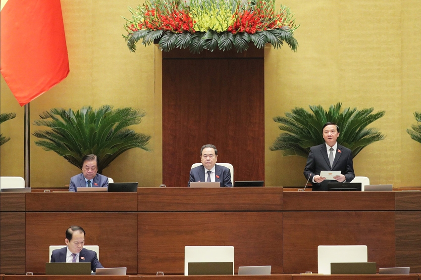 | Phó Chủ tịch Quốc hội Nguyễn Khắc Định điều hành phiên thảo luận. Ảnh: Hồ Long |