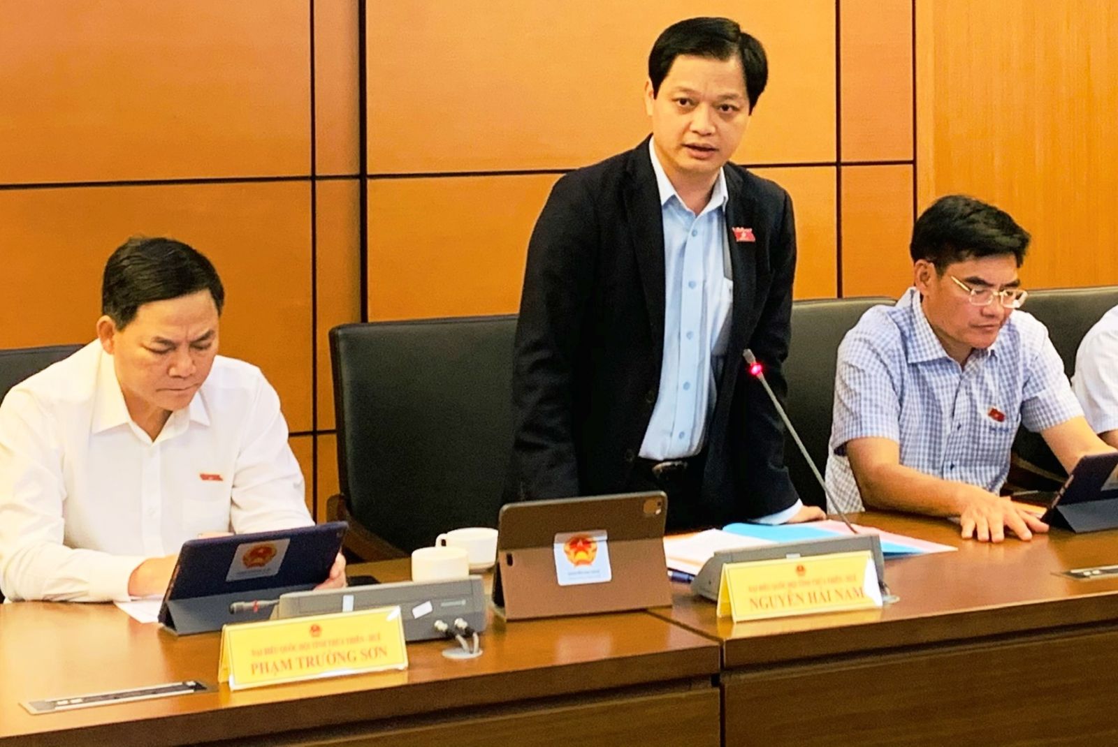 Đại biểu Nguyễn Hải Nam nêu ý kiến tại buổi thảo luận. Ảnh: Đoàn ĐBQH tỉnh
