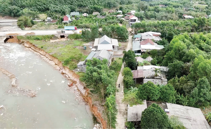Những ngày này, con đường chính nối Nam Đông với bên ngoài vẫn còn bị chia cắt do tuyến đường độc đạo Tỉnh lộ 14B và mố cầu Phú Mậu bị sạt lở nghiêm trọng. Để đến được Nam Đông, chúng tôi phải vào lối mở cắt ngang cao tốc La Sơn - Túy Loan - cách điểm cũ khoảng 300m. Qua lối mở này, cảnh tượng tan hoang đập vào mắt chúng tôi: Núi sạt trượt, đất trôi, sông suối sạt lở nghiêm trọng tạo thành những dòng chảy mới, hố trũng sâu hoắm, ăn sâu vào vườn tược, nhà dân, công trình cầu cống, hạ tầng...