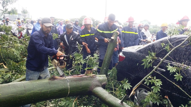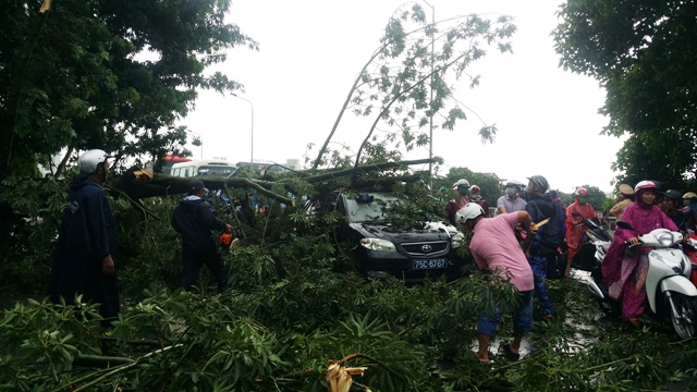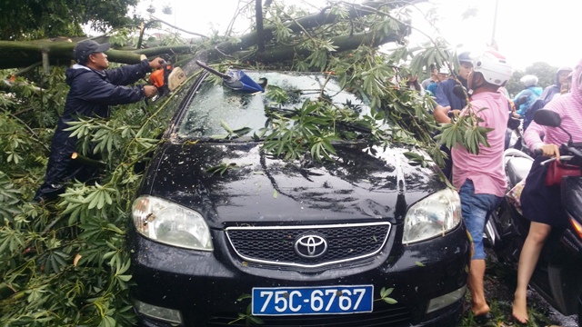 Theo đó, vụ việc xảy ra vào khoảng 11h trưa nay, chiếc xe mang biển số 75C-6767 chạy theo hướng đường Phạm Văn Đồng – Bà Triệu và bị cây gãy đè lên khi đến đoạn cầu Vĩ Dạ. Chiếc xe bị lún phần trần, gương chắn phía trước cũng như gương chiếu hậu cũng bị rạn nứt. Rất may tài xế (chưa rõ danh tính) không bị thương.